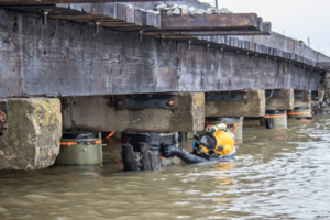 Las cinco señales más importantes de riesgo estructural en pilotes son: pérdida de sección, grietas relevantes, deformaciones, socavación y daño en conexiones o elementos asociados. Todas tienen algo en común: indican que el problema puede estar afectando la capacidad real del muelle, no solo su apariencia.